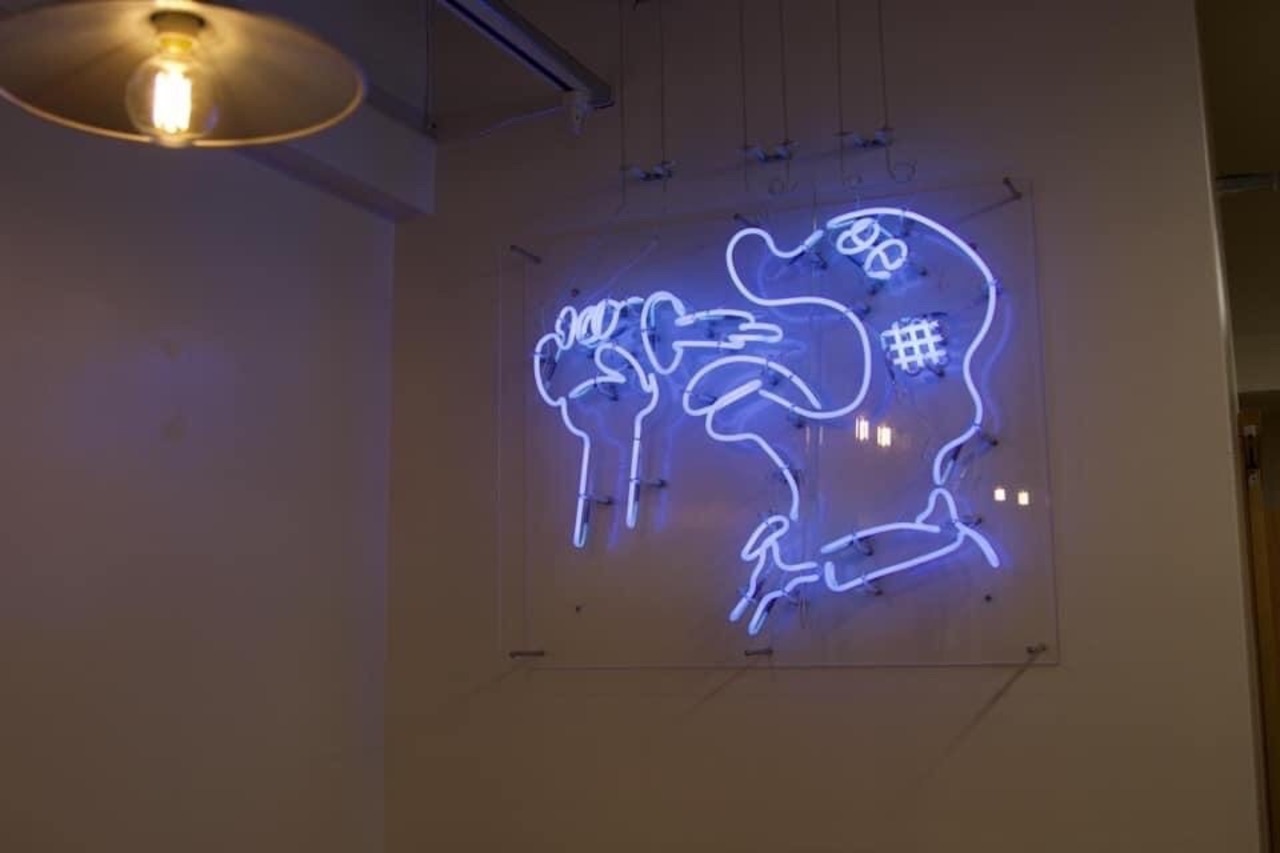 亀重蒸籠のネオンサインデザインの使用したオリジナルのガラスボトル。